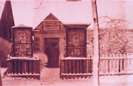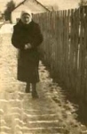 Note: Synagogue is building over her head (peaked roof). North end of town. |