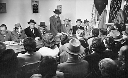 [L-R]: Yeshayahu Skubelski, unrecognized, Boruch Fishel Zemel,